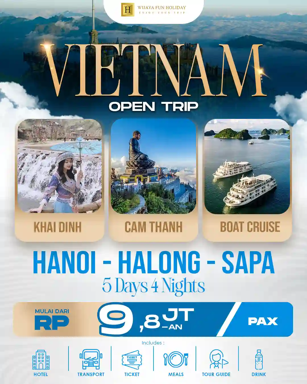 Menjawab antusiasme liburan ke luar negeri yang semakin memuncak, Wijaya Fun Holiday mempersembahkan salah satu trip unggulan kami: Open trip vietnam Hanoi -Halong – Sapa 5D4N & All Inclusive 2026.