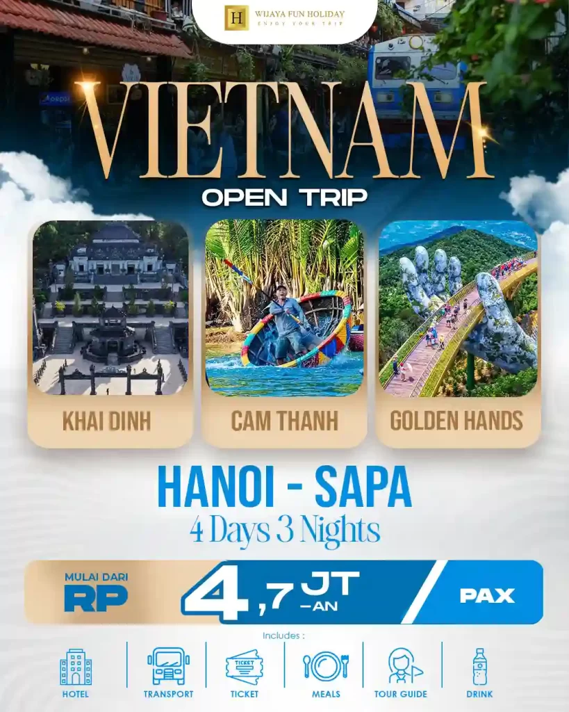 Cek Pilihan paket Open Trip Vietnam dari Wijaya Fun Holiday, liburan sesuka hati tanpa terikat jadwal kaku. Nikmati privasi total dan fleksibilitas penuh bersama keluarga atau sahabat.