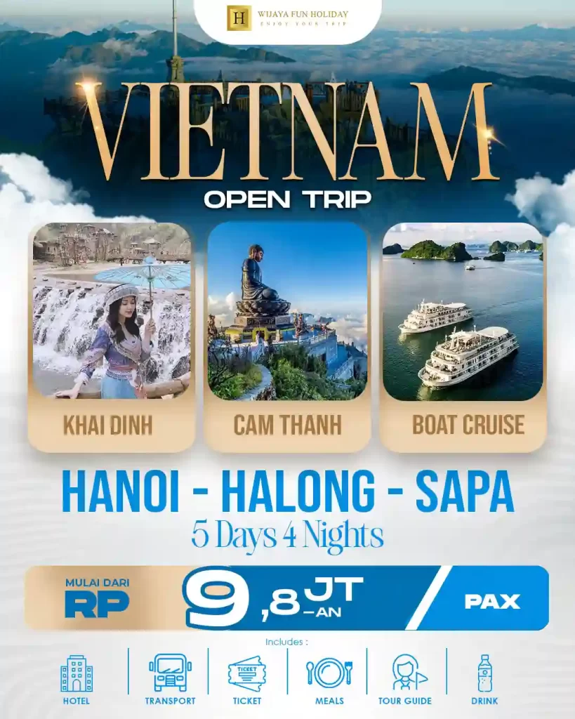 - Demi kelancaran paket open trip Vietnam terjangkau ini, acara perjalanan dapat berubah tanpa pemberitahuan terlebih dahulu.